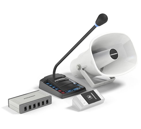 Комплект 1+6-канального переговорного устройства клиент-кассир для АЗС с системой громкого оповещения.