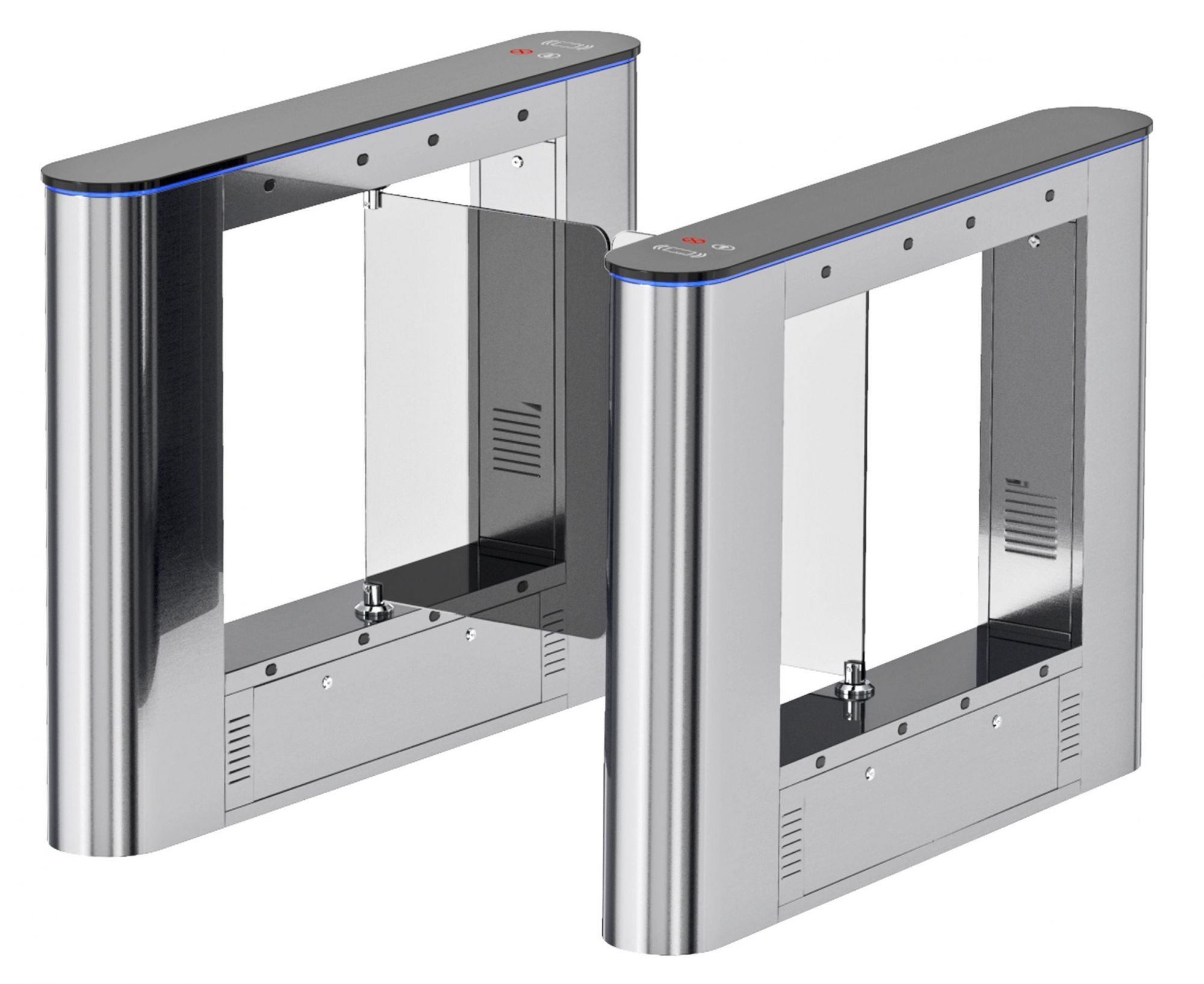 Блокпост РСП 600 — это преграждающая конструкция, имеющая створки, которые закреплены на вертикальных валиках и могут распахиваться как в одну сторону, так и в другую. Распашной турникет оборудован функцией «Антипаника». Эта функция автоматически освобождает проход в экстренных случаях или при сбое электропитания, также она может быть активирована с пульта ДУ.