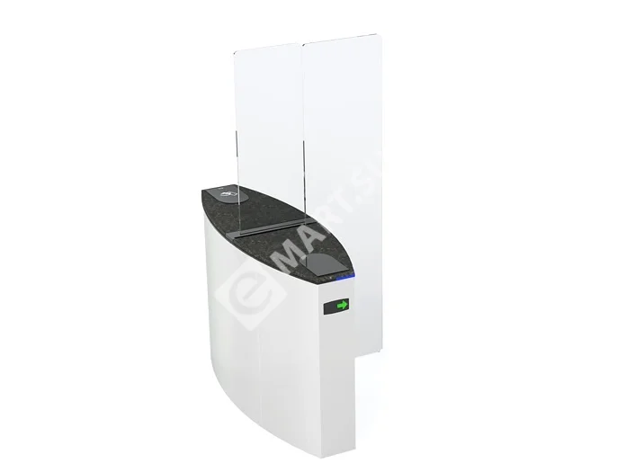 Модуль выполнен в прочном корпусе из нержавеющей стали и оснащен сервопозиционным электроприводом с интеллектуальной системой обнаружения препятствий. Створка изготовлена из закаленного стекла толщиной 10 мм, что гарантирует надежность и стильный внешний вид. Для информирования пользователей предусмотрены светодиодные индикаторы направления прохода.
