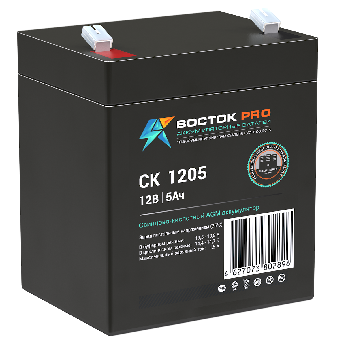 Свинцово-кислотные аккумуляторы ВОСТОК серии CK предназначены для использования в системах бесперебойного питания, резервного энергоснабжения, автономных энергосистемах. Изготовлены по AGM технологии (электролит, абсорбированный в стекловолоконном сепараторе), являются герметизированными и необслуживаемыми, со сроком службы в буферном режиме 10 лет (от 5 до 26 Ач – 5 лет). Обладают высокими разрядными и эксплуатационными характеристиками благодаря использованию в составе электролита и намазной пасты специальных добавок, препятствующих коррозии и замедляющих процесс старения.