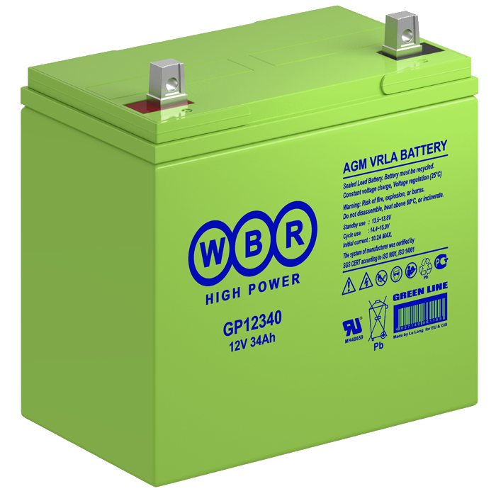 Аккумулятор WBR GP12340 - герметизированная, выполненная по технологии AGM, аккумуляторная батарея общего применения со сроком службы до 8 лет в буферном режиме или 260 циклов заряда-разряда в циклическом режиме при 100% разряде. Эта высокоэффективная, перезаряжаемая батарея, не требующая обслуживания в течение всего срока службы.