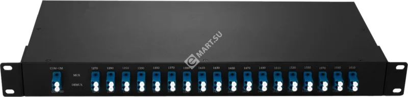 Мультиплексор CWDM двухволоконный, Mux+Demux, 2 канала, 2 длины волны (TRx:1570, 1550), оптические порты TRx типа LC/UPC, COM типа SC/UPC, шасси 19', 1U