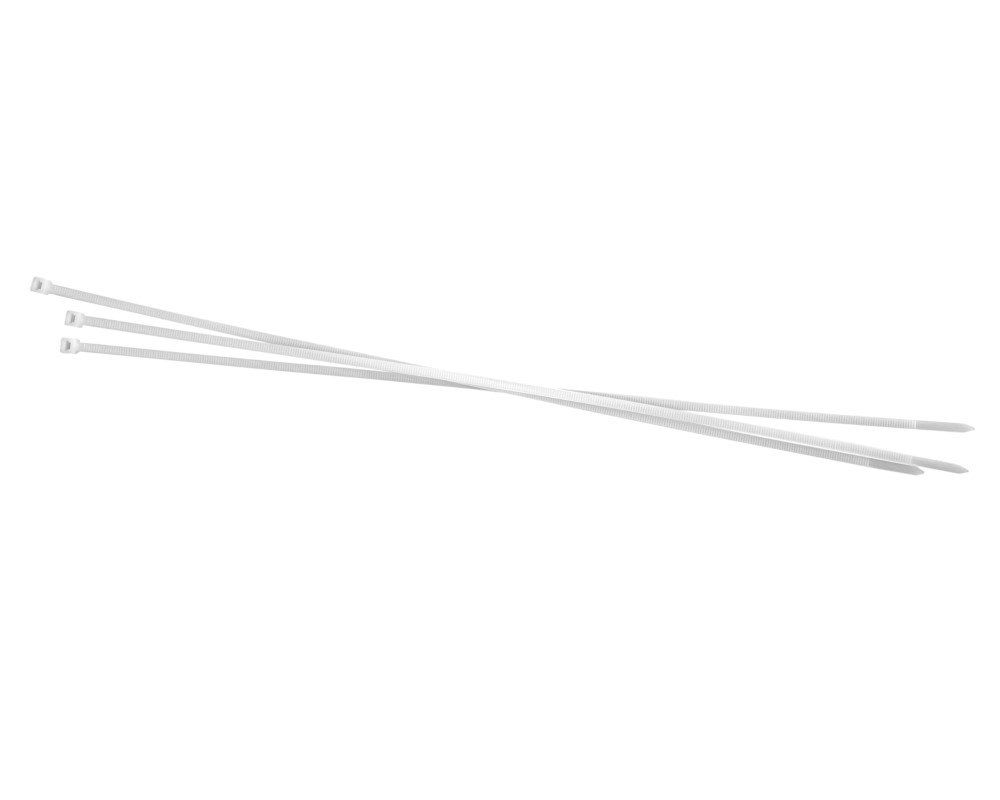 Допускается отклонение в размерах в пределах +/-3% Длина: 450мм Ширина: 4,8мм Прочность на разрыв (кг): 22 Упаковка: 100 шт. Цвет: белый Диапазон температур: эксплуатация от -35С до +85 С хранение от 0С до +40 С, при влажности от 50 до 70% (перед началом монтажа стяжки должны находиться в таких же условиях не менее 24 часов) Стяжки должны храниться вдали от обогревательных и отопительных приборов. рекомендуемая температура монтажа от +5С до +50 С Диаметр обхвата проводов и кабелей: от 3 до 130 мм Материал: нейлон 66 Замковый механизм одностороннего хода. Неразъемный